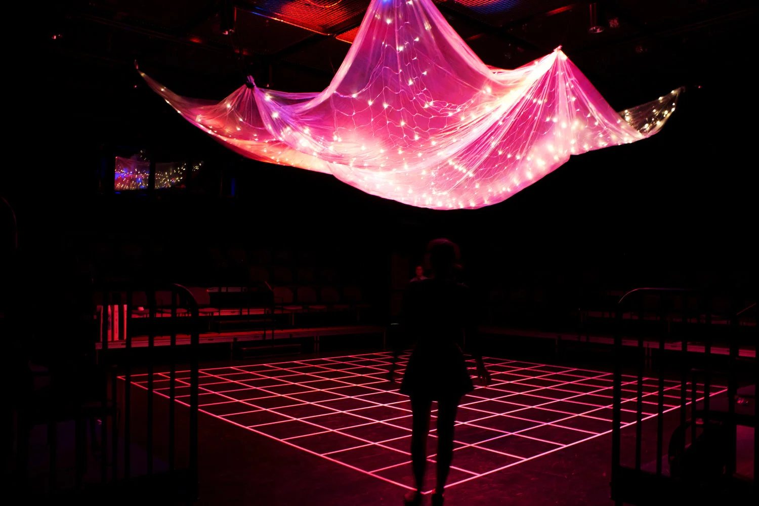 Worked with a Design and Production partner to create a design plan for a theatre in the round performance of the highly conceptualized Constellations. Working with undertones of water, fluidity, and physics- the show is meant to illicit a feeling of ebb and flow.